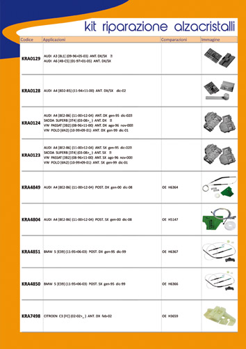 KIT RIPARAZIONE ALZAVETRO - WINDOW LIFT REPAIR KIT